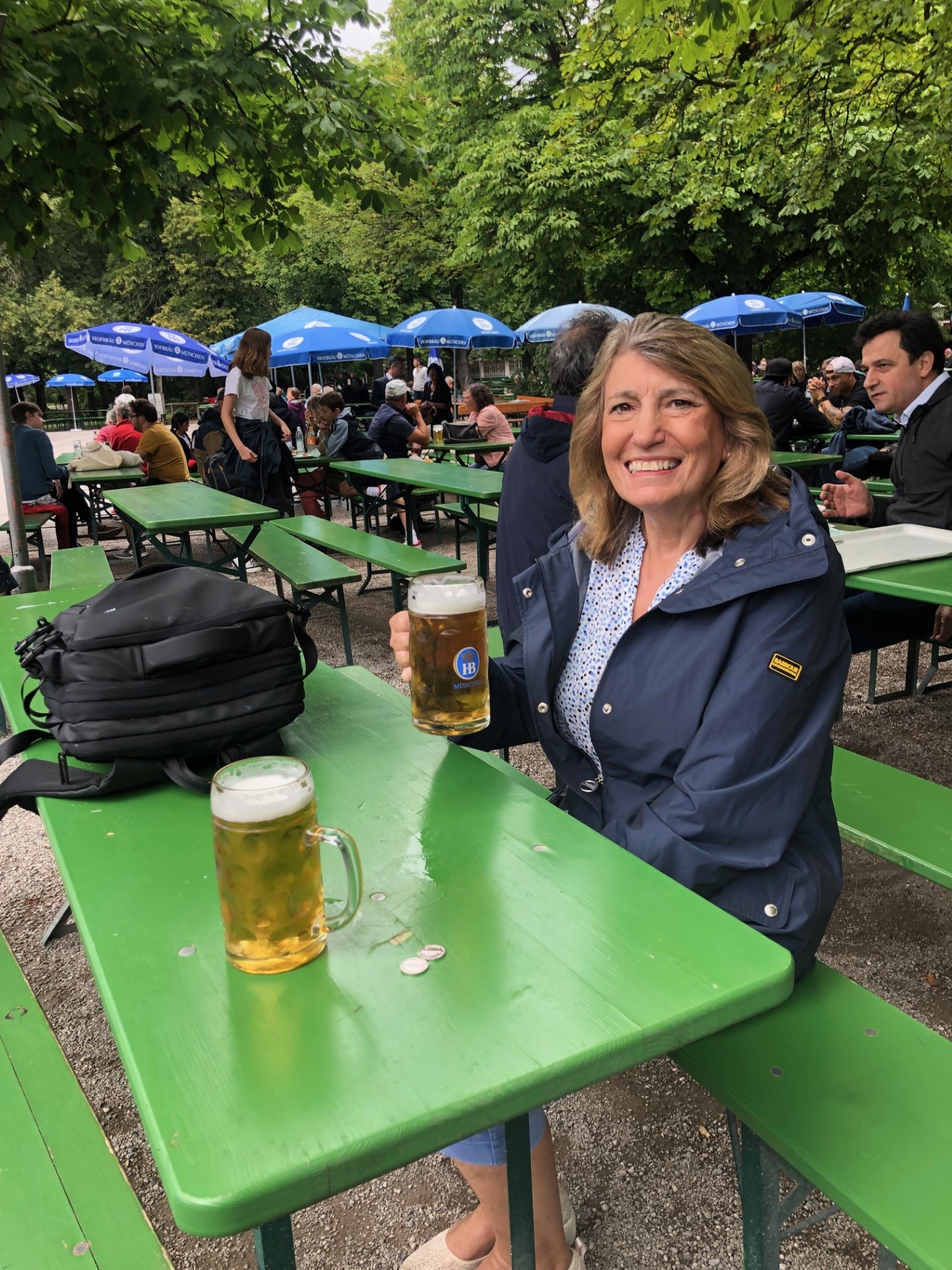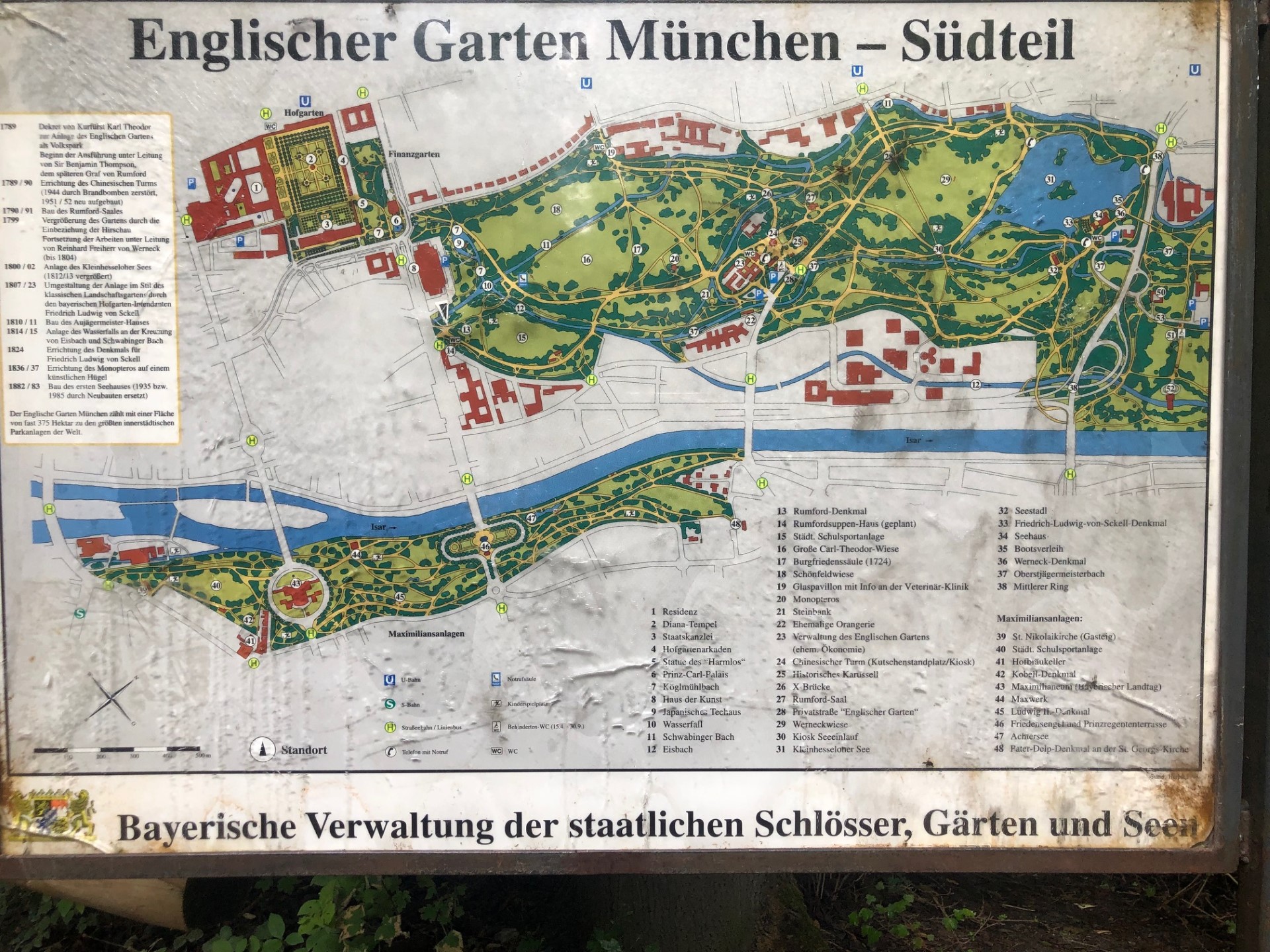 Day 4 - Wednesday August 9th A full day in Munich. The morning started showery and we had to take shelter once but the day cleared later and was fine. We started off at the English Garden and watched the surfers. Then went to the Ducal Palace but the queue was too long so we gave it a miss. We went into the Alt Stadt and visited th cathedral and several churchs. We then went for a longer walk around the English Garden and visited the Chinese Turm and had a beer. Though not before spending an hour sat on a bench phoning round arranging care for Steve's mum with Stoke Heath. An interesting and productive day. Polished off with a lovely meal at an Italian restaurant close to the hotel.
