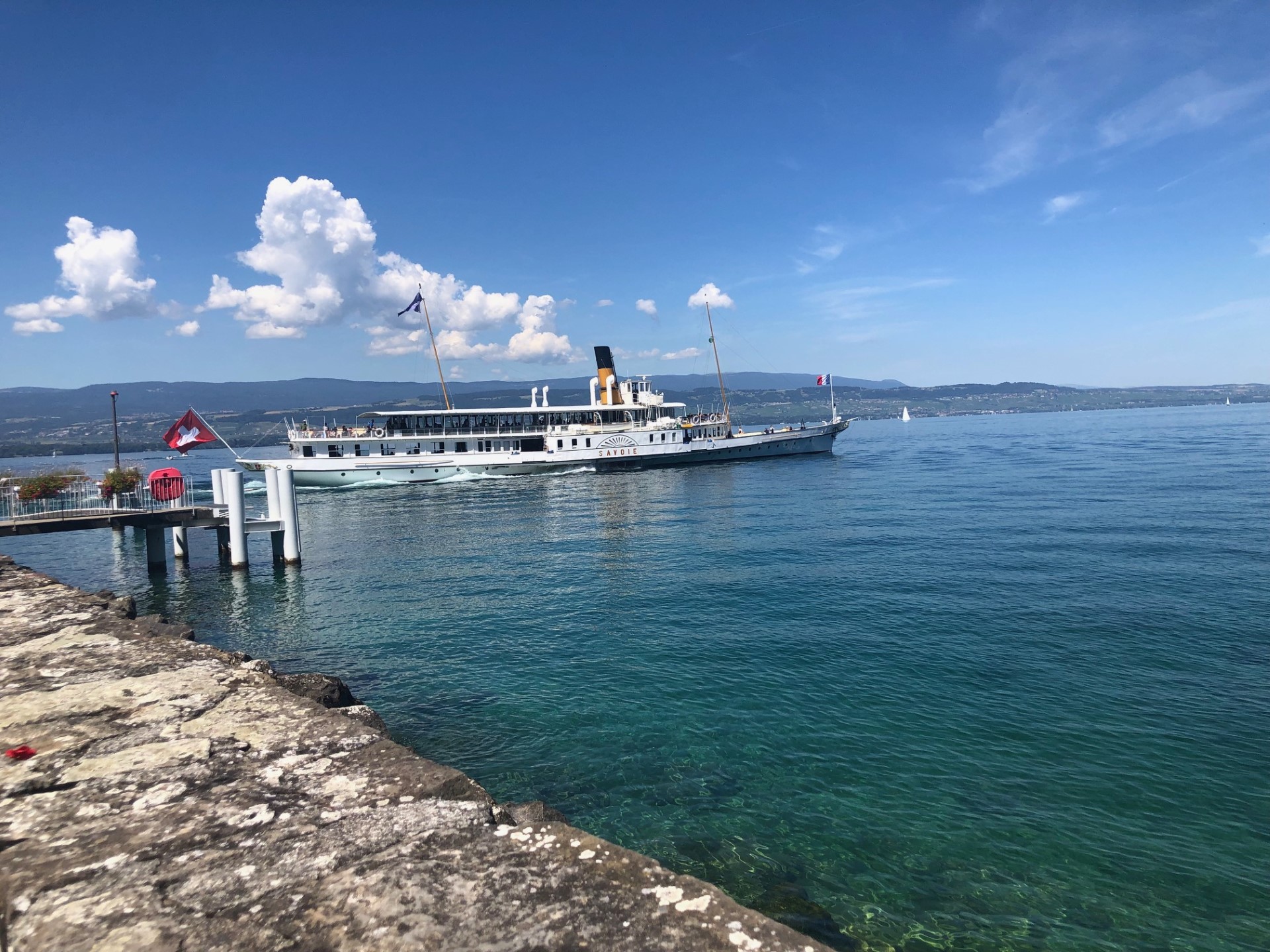 Day 7 - Saturday August 12th Gary drove down to Lake Geneva again this time to Evian-les-Bains. Here we caught the ferry across Lake Geneva to Lousanne. It's quite a steep hill up to the centre of the town so we were brave and took the underground - having to pop our heads out at numerous stops to see if we were in the right place - like meerkats! Looked round the cathedral and then had lunch outside the Registry Office where we witnessed a wedding every 5 minutes - or so it seemed. In terms of the density of wierdos per square metre - Lousanne takes some beating! Got back to the chalet wondering if we'd be going round to the neighbours for dinner - we were so tired we were greatful that it was arranged for tomorrow.